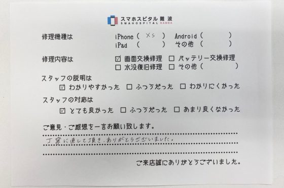 弊社の修理サービスをご利用いただいきましたお客様の声です。