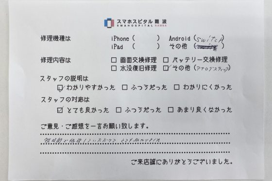 弊社の修理サービスをご利用いただいきましたお客様の声です。