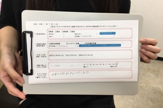 弊社の修理サービスをご利用いただいきましたお客様の声です。