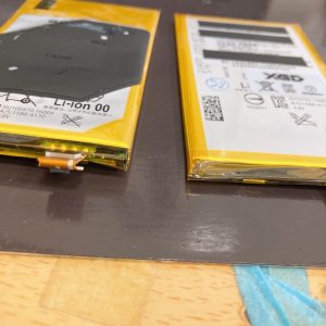これがバッテリーの写真になります。左が元の膨張しているバッテリー、右が新品のバッテリーです。