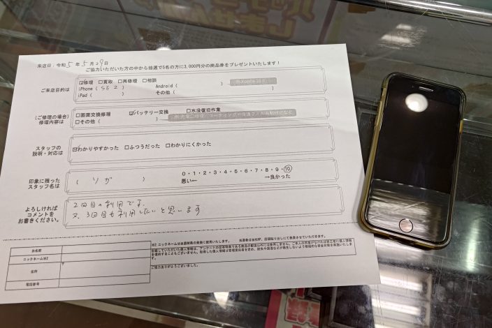 iPhoneSE2バッテリー交換致しました。