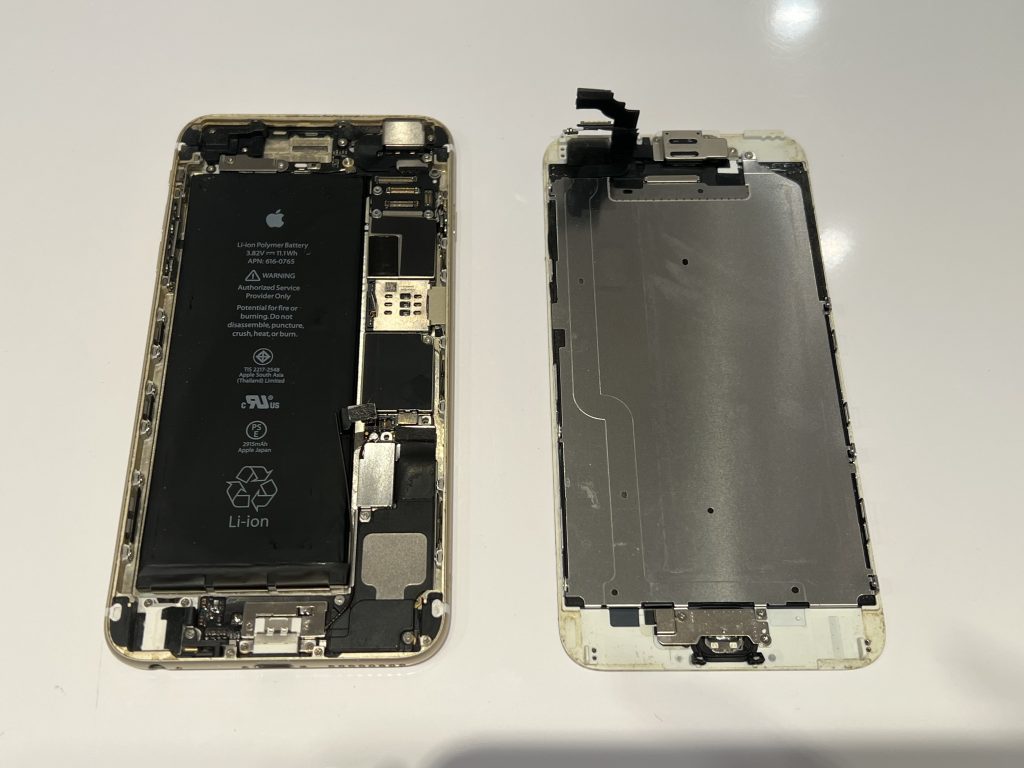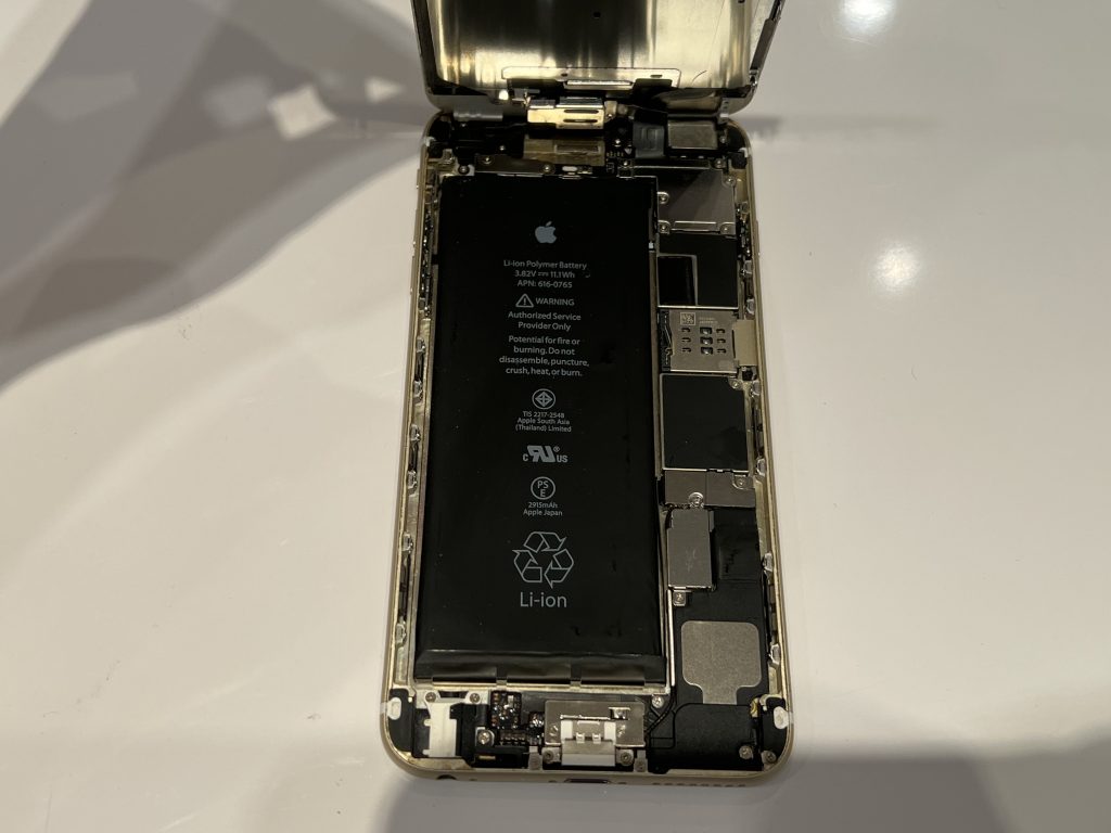 今回の修理端末はiPhone6+ですので、耐水機能はついていない機種です。