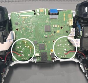 白いまるで囲んだ部分の反対側にアナログスティックが取り付けられているのですが、