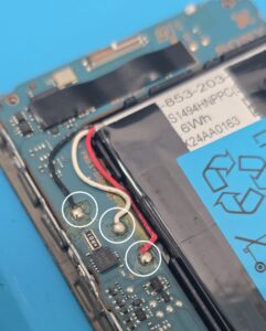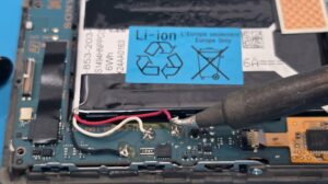 新しいバッテリーの接点を先ほどの色の配置に習ってはんだ付けして取り付けます。
