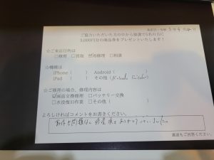 スマホスピタル練馬 Switchの液晶交換修理のお客様からコメントをいただきました