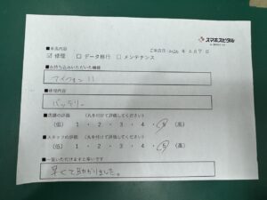 スマホスピタル練馬 iPhone 11の修理のお客様からコメントをいただきました。