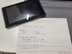 スマホスピタル練馬 Switch SDカードスロット交換のお客様からコメントを頂きました
