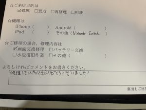スマホスピタル練馬 SwitchのRボタン修理のお客様からコメントをいただきました。