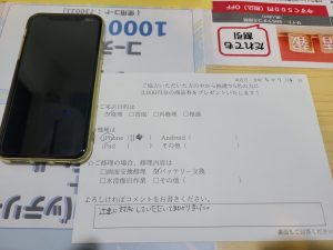 スマホスピタル練馬 iPhone 11のバッテリー交換のお客様からコメントをいただきました
