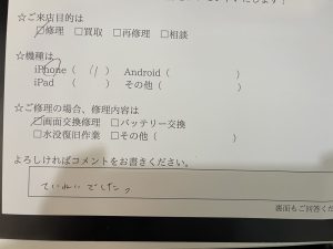 スマホスピタル練馬 iPhone11画面交換のお客様からコメントをいただきました。