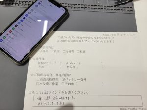スマホスピタル練馬 iPhone 11のバッテリー交換のお客様からコメントを頂きました