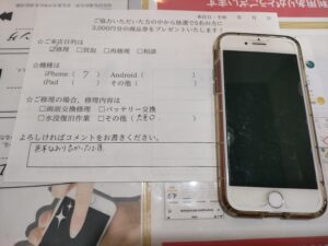 スマホスピタル練馬 iPhone 7の修理のお客様からコメントをいただきました。