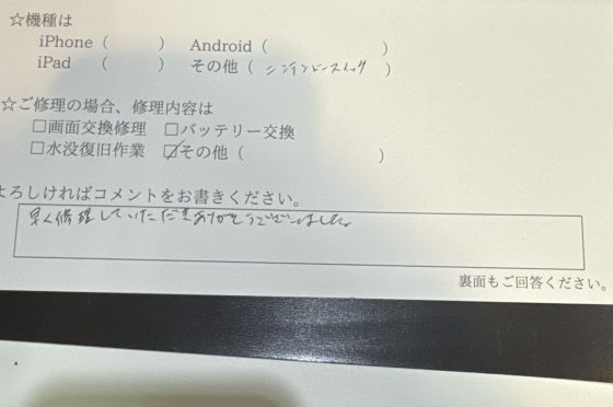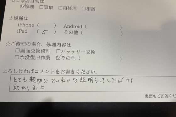 iPad修理のお客様からコメントをいただきました。