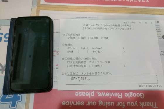 iPhone11Proの修理のお客様からコメントをいただきました。