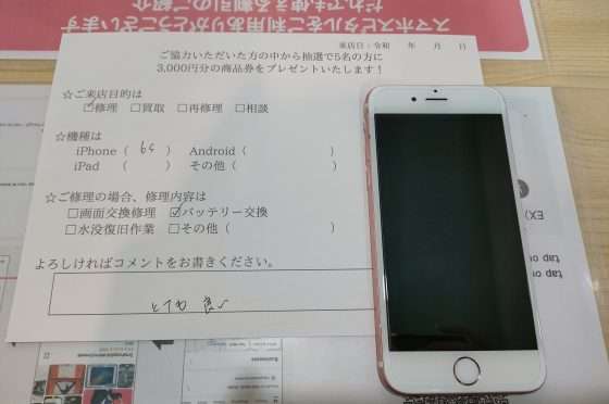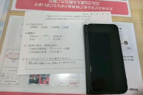 iPhone 6sの修理のお客様からコメントをいただきました。