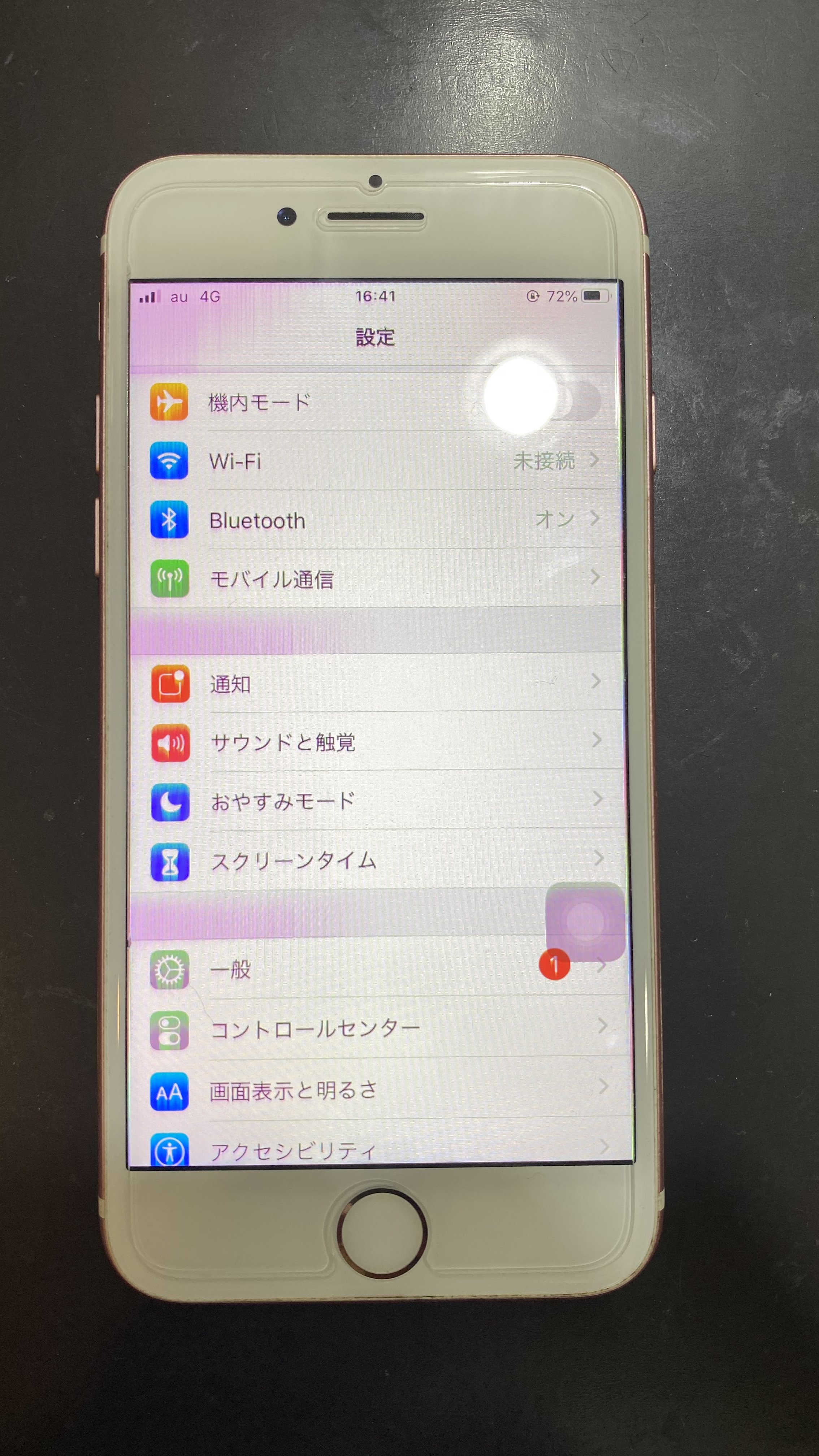 今回お持ちいただいた端末は画面の端がピンクがかっていて操作する際に気になるというものでした。