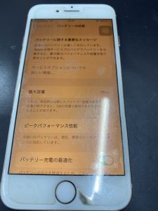 本日、バッテリー交換を行う端末がこちらになります、修理前のバッテリーの最大容量は76%と