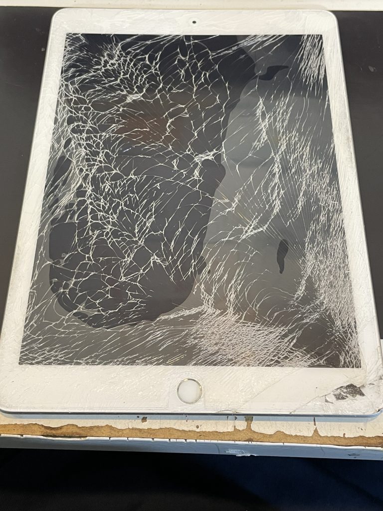 落としたことで画面がバキバキに割れたipad6!ガラス交換修理で綺麗に出来ます!