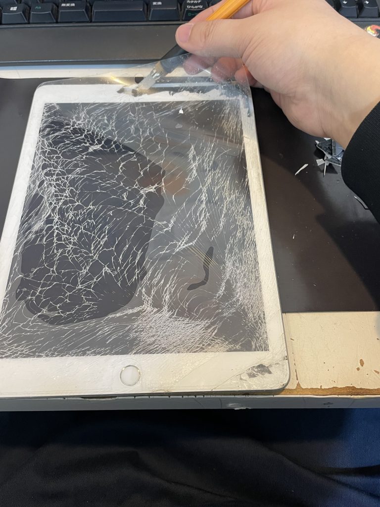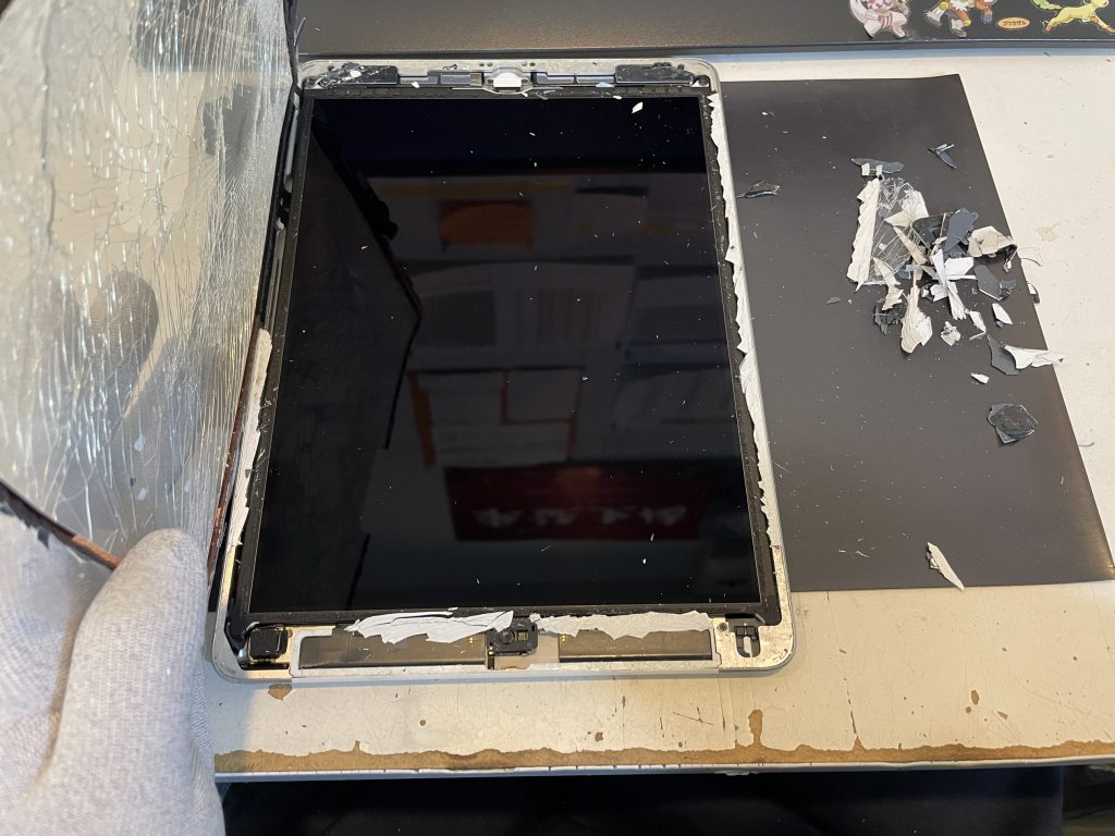 粉々に割れたことで画面の取り外しは簡単になりましたが、