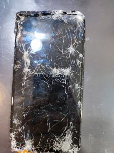 修理前は画面のガラスがバキバキに割れておりまともに触れない状態でした。