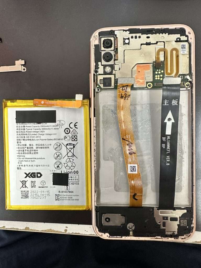 新しいバッテリーに交換しました!この端末はバッテリーの上にケーブルが通っているのでバッテリーを交換してから付け忘れに注意しましょう!