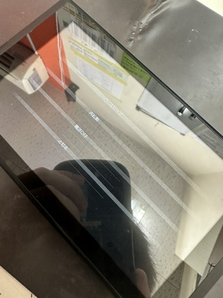 液晶画面がにじんでいるように、横に広がって表示されていて画面が正常に表示されていないのが分かりますね。