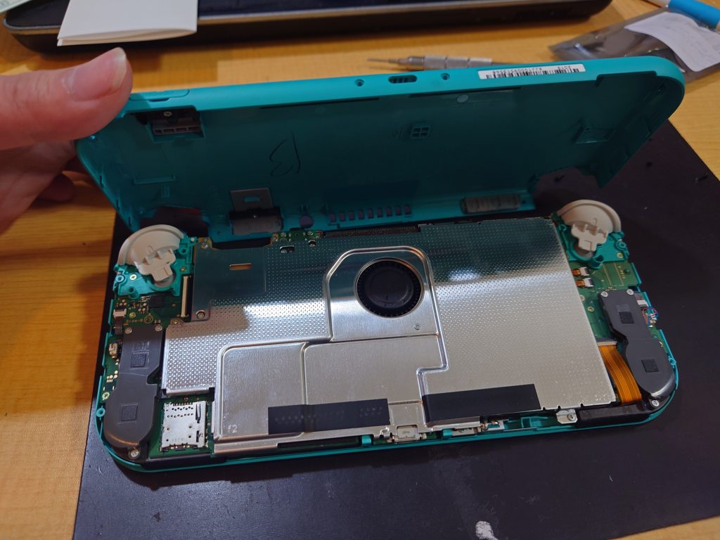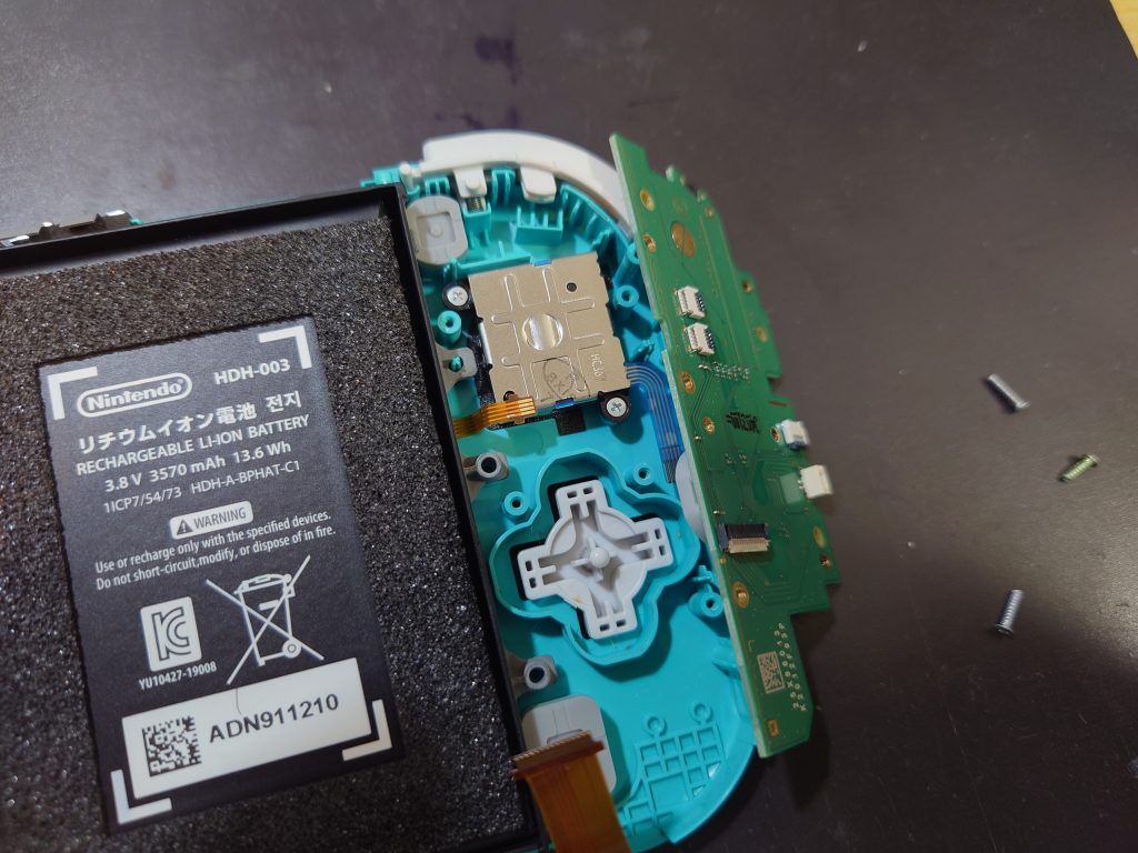 背面から開けているの今回は左スティックの修理になるので