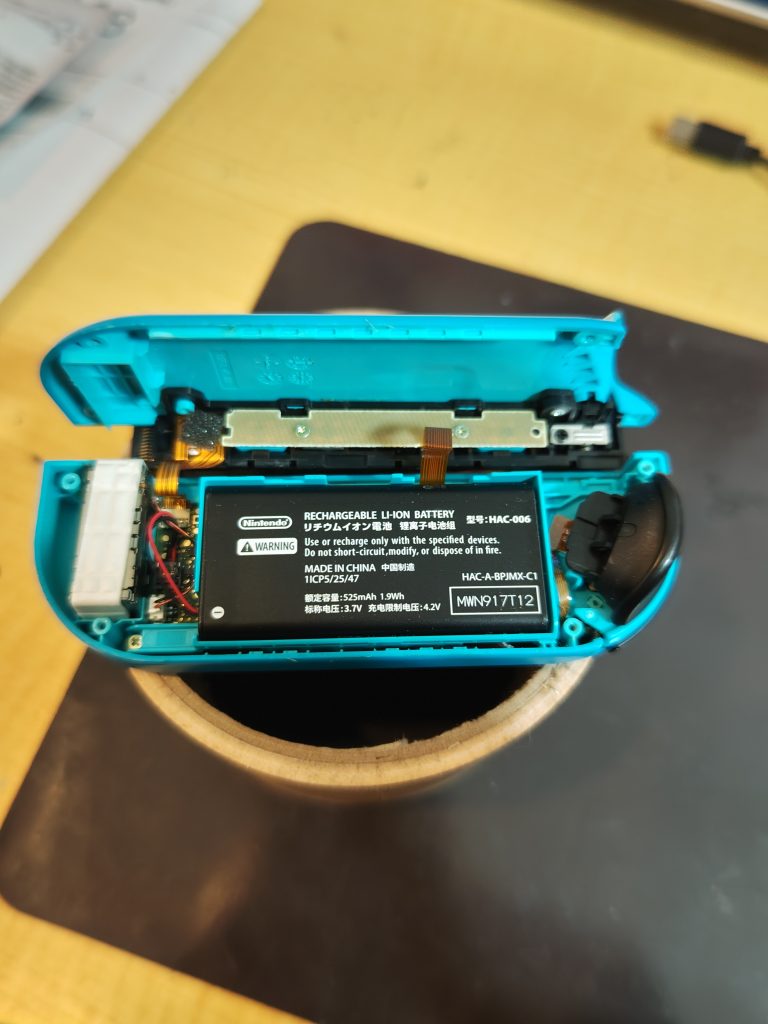 背面を開くとバッテリーが乗っているのでコネクターを基板から外しバッテリーを取り出します。