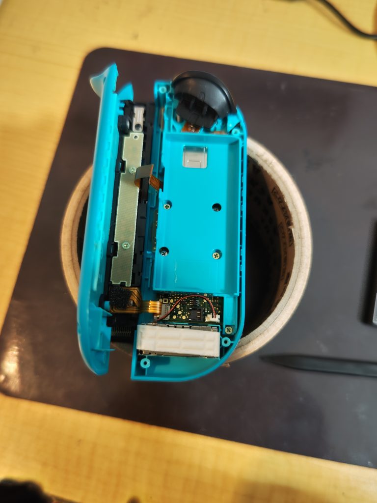 アナログスティックを外す上で邪魔になるケーブルを外しアナログスティックを固定しているネジを外しアナログスティックを取り出します。
