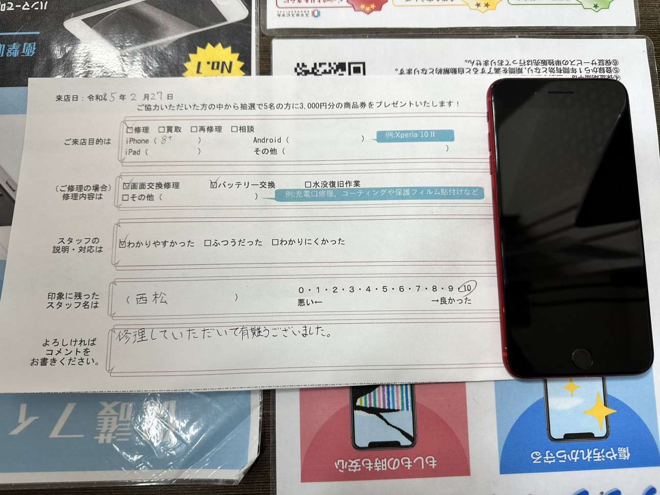 修理していただいて有難うございました。