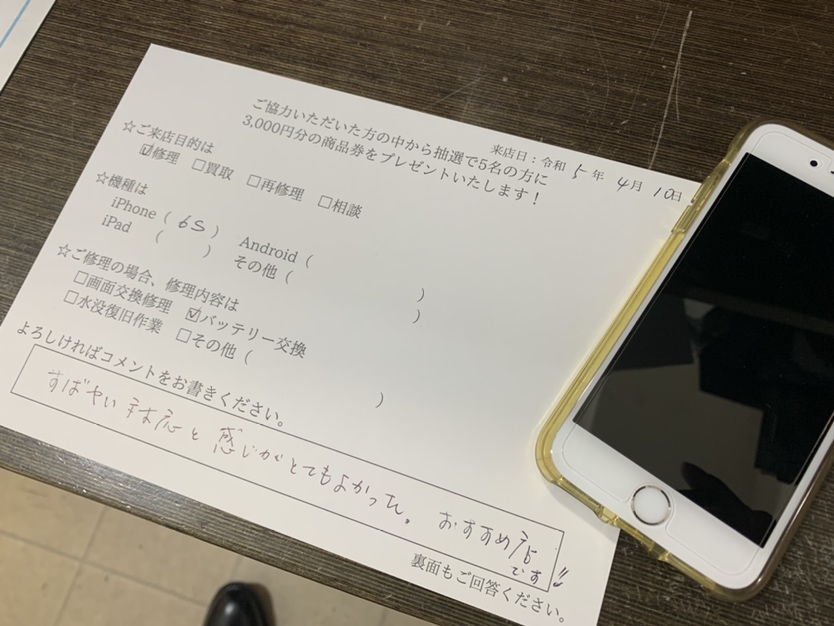 スマホスピタル西宮北口 iPhone6s バッテリー交換