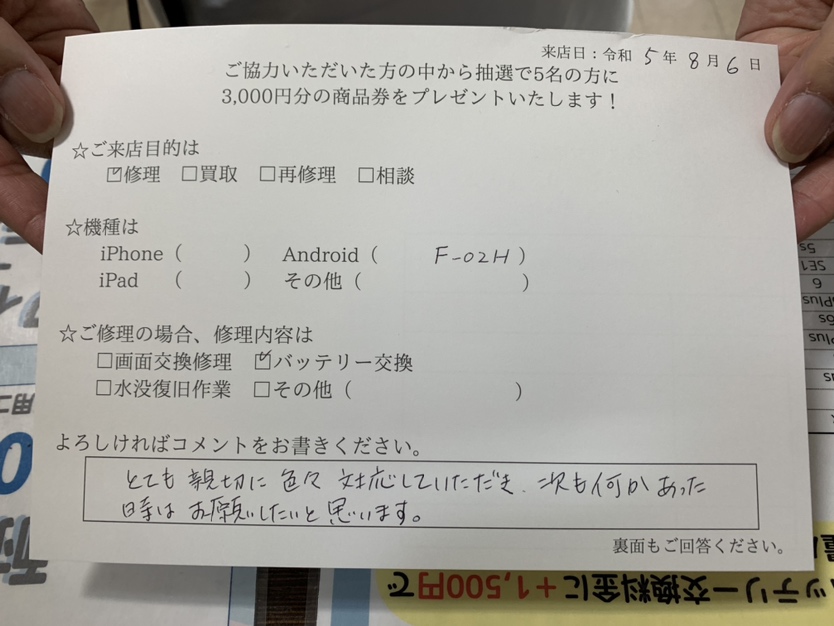 スマホスピタル西宮北口 arrows NX F-02H バッテリー交換