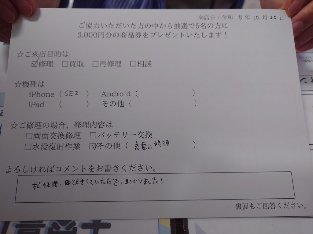 スマホスピタル西宮北口 iPhoneSE2 充電口