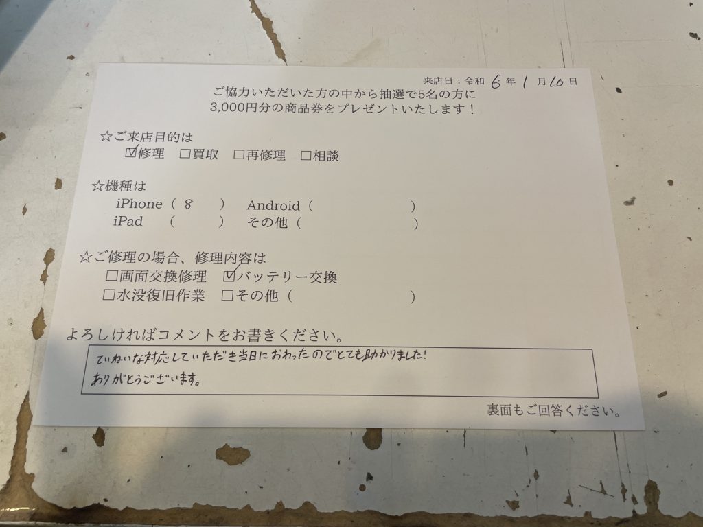 スマホスピタル西宮北口 iPhone8 バッテリー交換