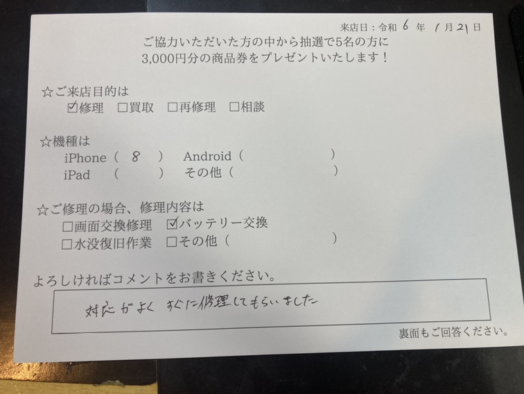 スマホスピタル西宮北口 iPhone8 バッテリー交換