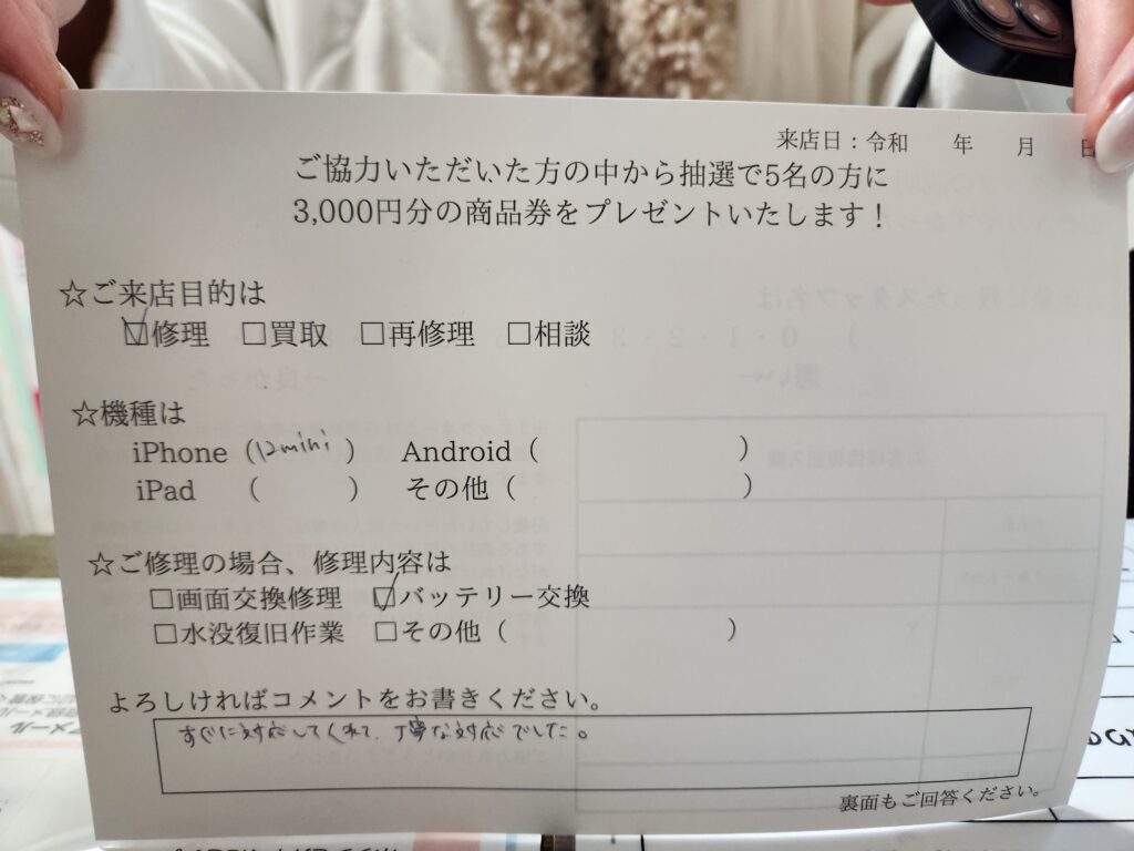 スマホスピタル西宮北口 iPhone12mini バッテリー交換