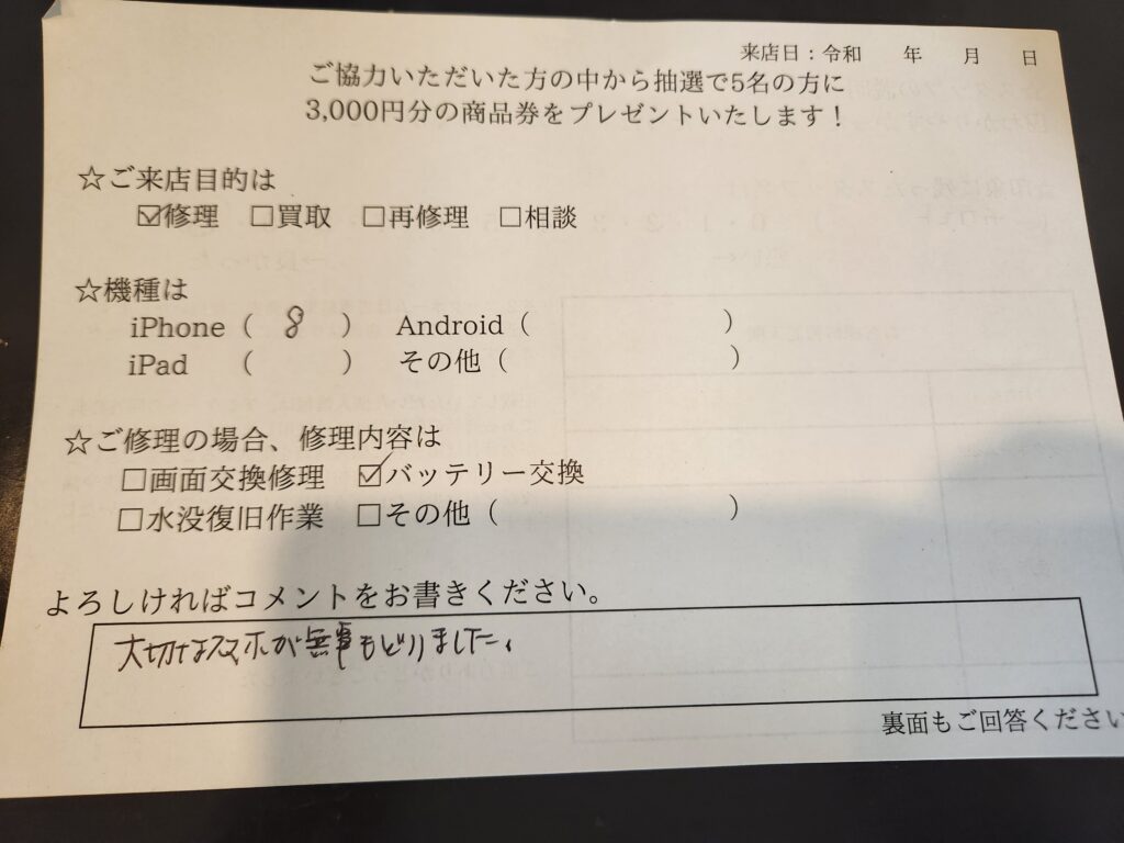 スマホスピタル西宮北口 iPhone8 バッテリー交換