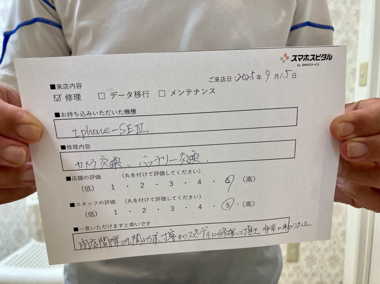 スマホスピタル西宮北口 iPhoneSE第3世代 バックカメラ・バッテリー交換