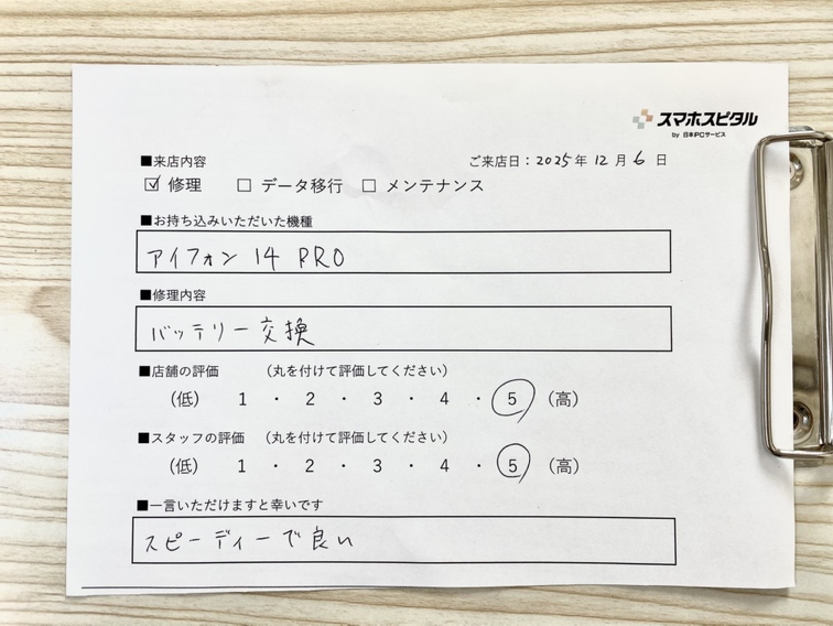 スマホスピタル西宮北口 iPhone14Pro バッテリー交換