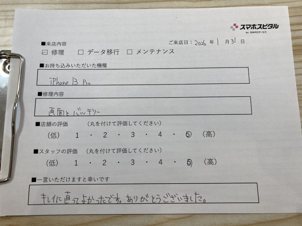 スマホスピタル西宮北口 iPhone13Pro 画面 バッテリー交換