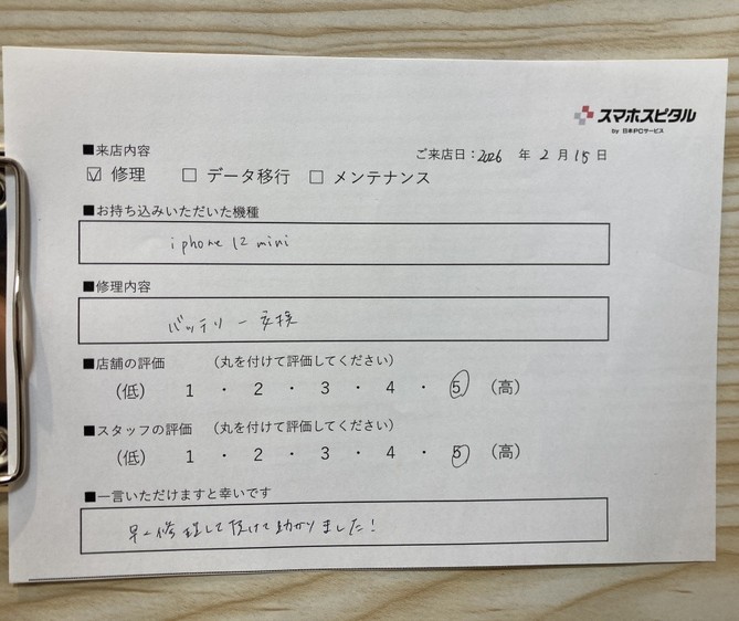 スマホスピタル西宮北口 iPhone12mini バッテリー交換