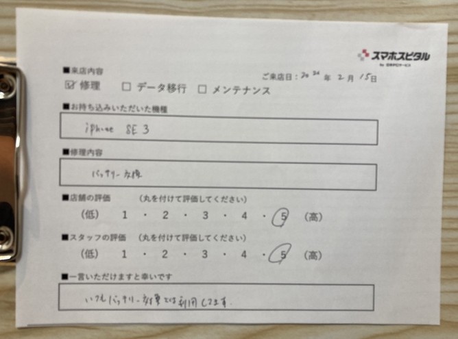 スマホスピタル西宮北口 iPhoneSE3 バッテリー交換