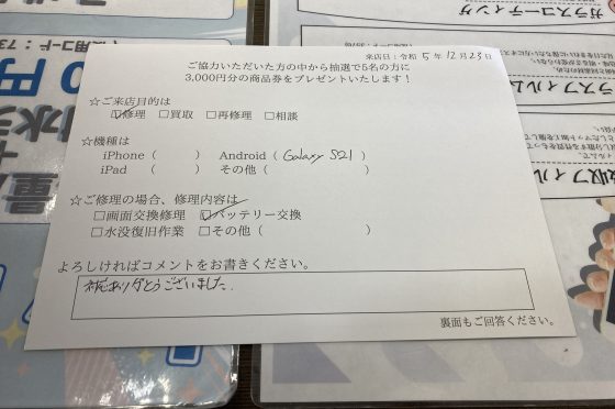 弊社の修理サービスをご利用いただいきましたお客様の声です。