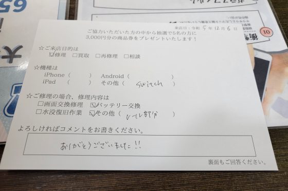 弊社の修理サービスをご利用いただいきましたお客様の声です。