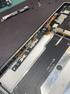 「電源ボタンが陥没して押せない」とのことでご来店いただきました。