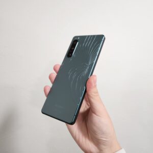Xperia5Ⅳのバックパネルは擦りガラスのような素材でできています。ガラス素材ですので、強い衝撃が加わると破損してしまいます。