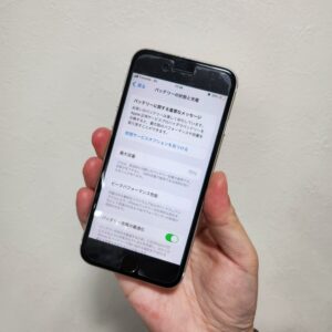 設定画面から「バッテリーに関するメッセージ」が表示されています。この表示が出たらバッテリーの劣化のサインです。