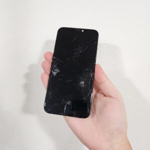 ご来店時のiPhoneXSは、落下の衝撃で画面全体にヒビが広がっており、ガラスがバキバキに割れた状態でした。