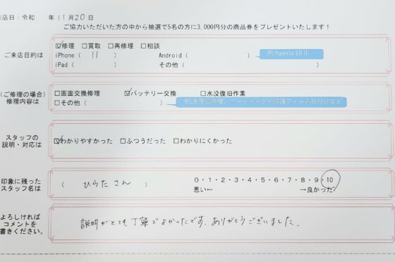 【バッテリー交換】説明がとても丁寧でよかったです!