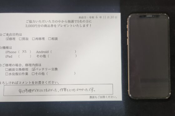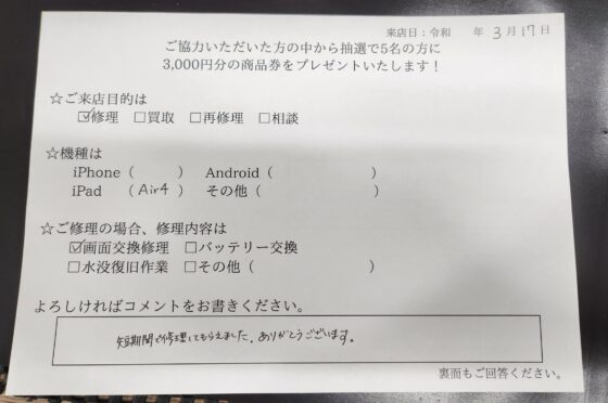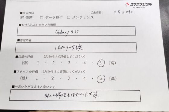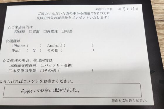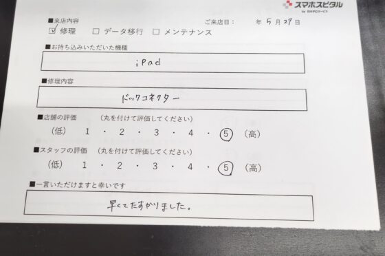 弊社の修理サービスをご利用いただいきましたお客様の声です。